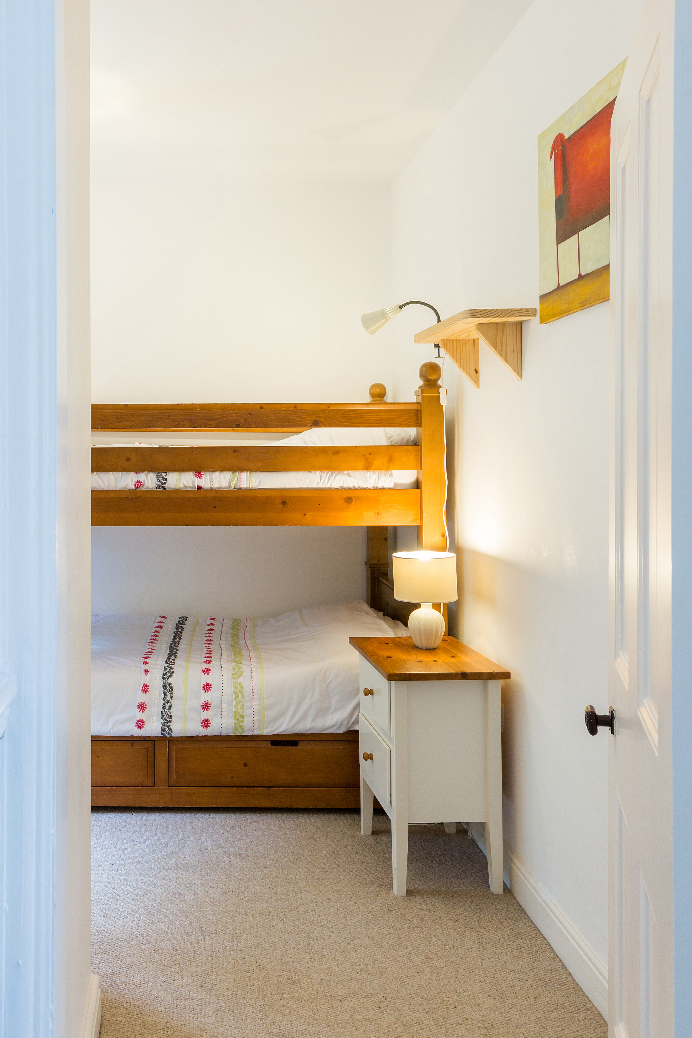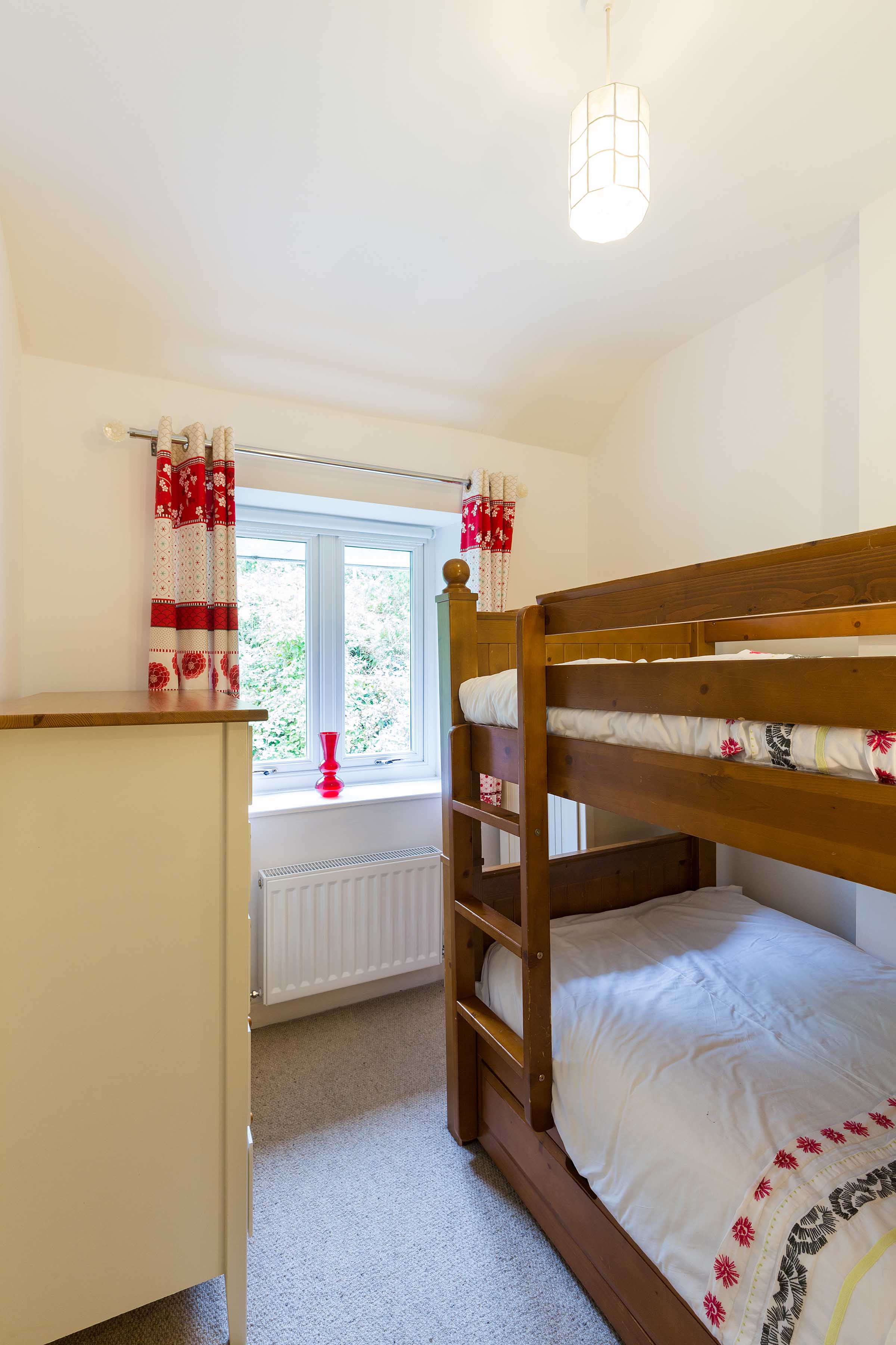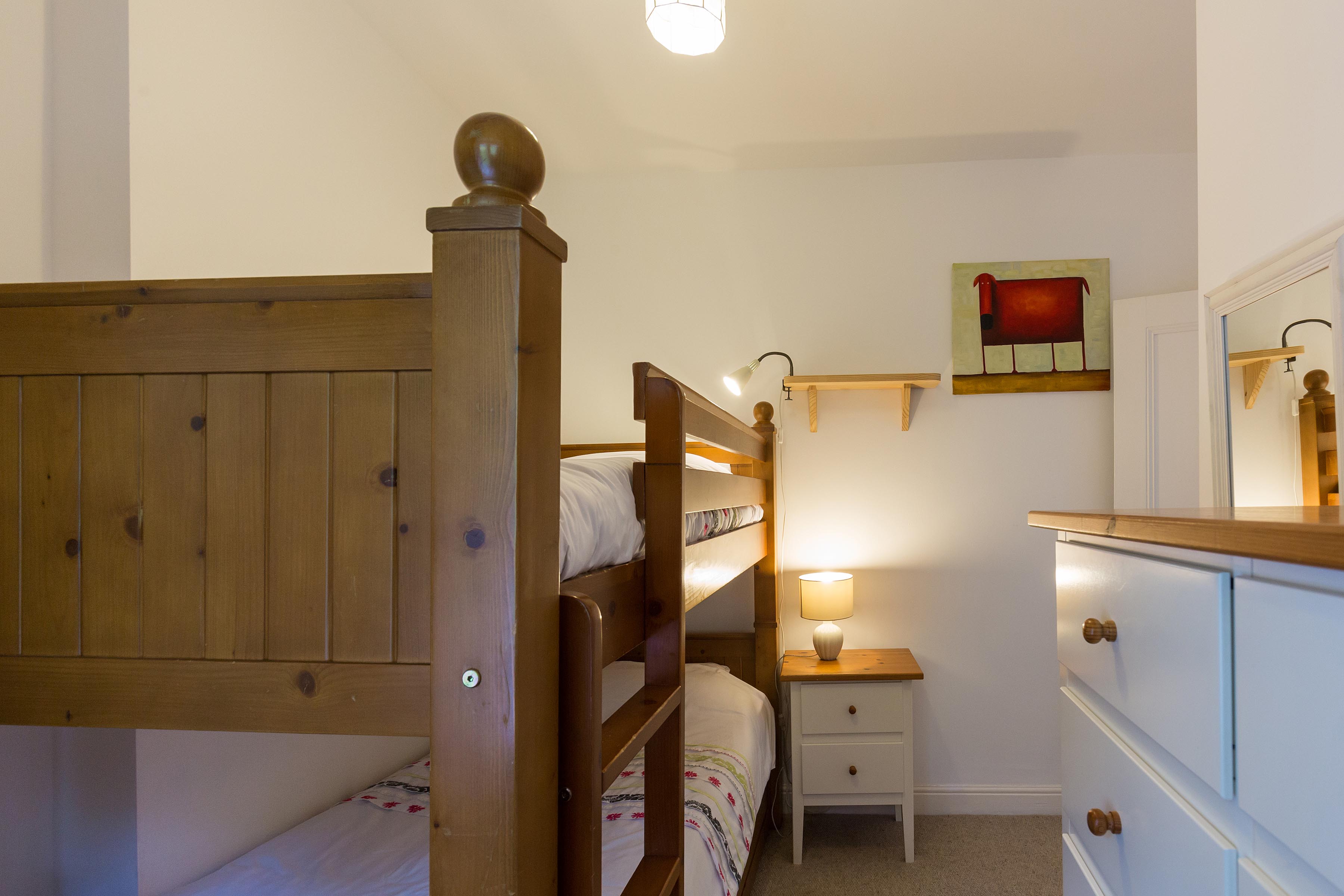Full size bunk beds (which can sleep 2 adults), a wardrobe, a chest of drawers and a bedside table are provided.