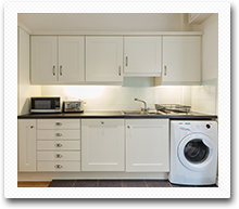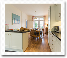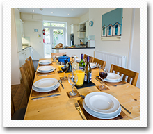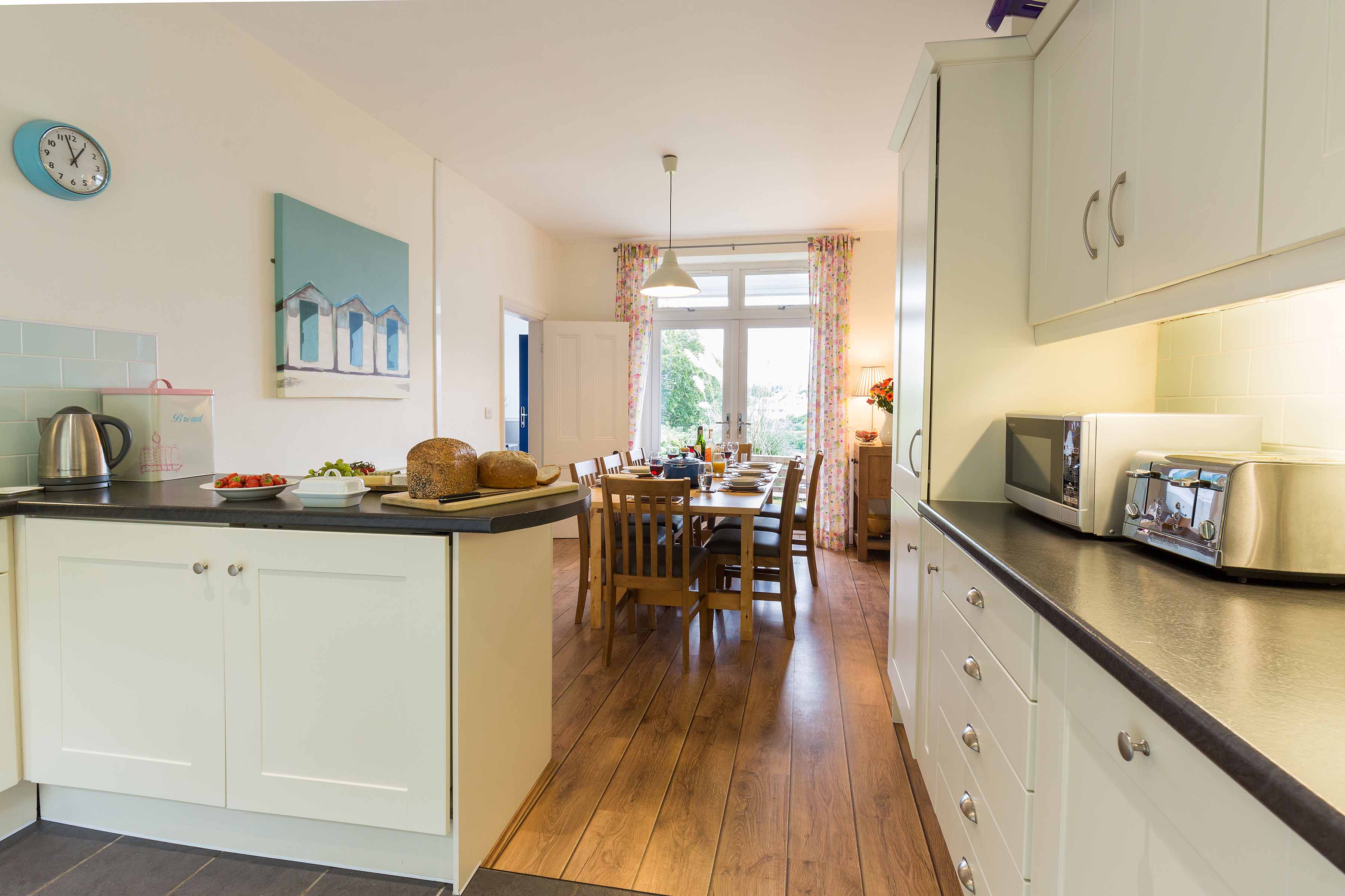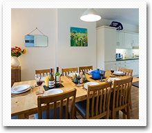 A fully equipped kitchen is provided to include an eye-level electric oven, 5 ring gas burner, extractor hood, 70:30 fridge/ freezer, a second undercounter fridge, dishwasher, washer/ dryer & microwave. A spacious eating area is located to the front of the kitchen/diner where eight adults can comfortably eat around the large dining table whilst enjoying the spectacular sea and mountain views. A portable ipod docking station and digital dab radio is also available for use.