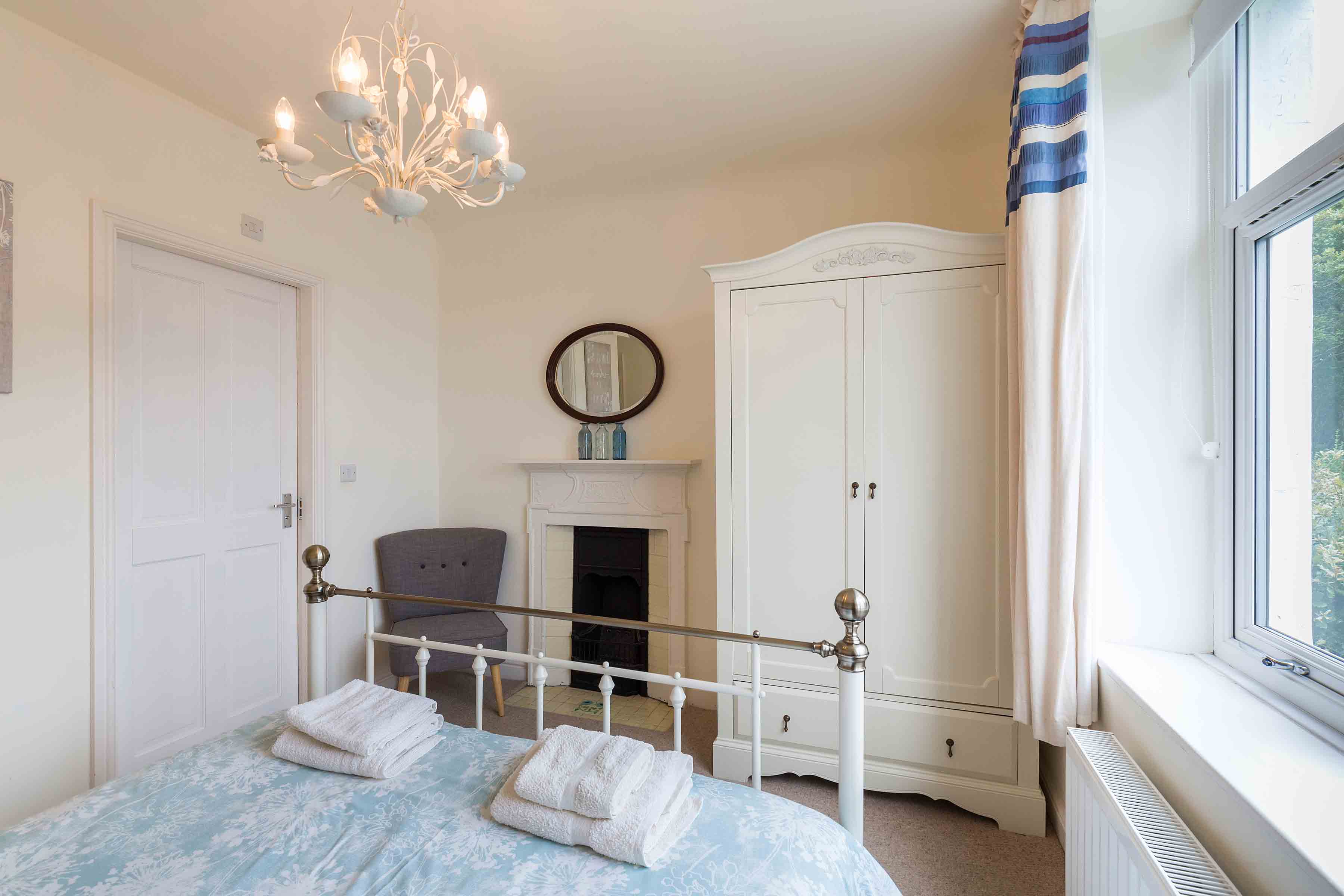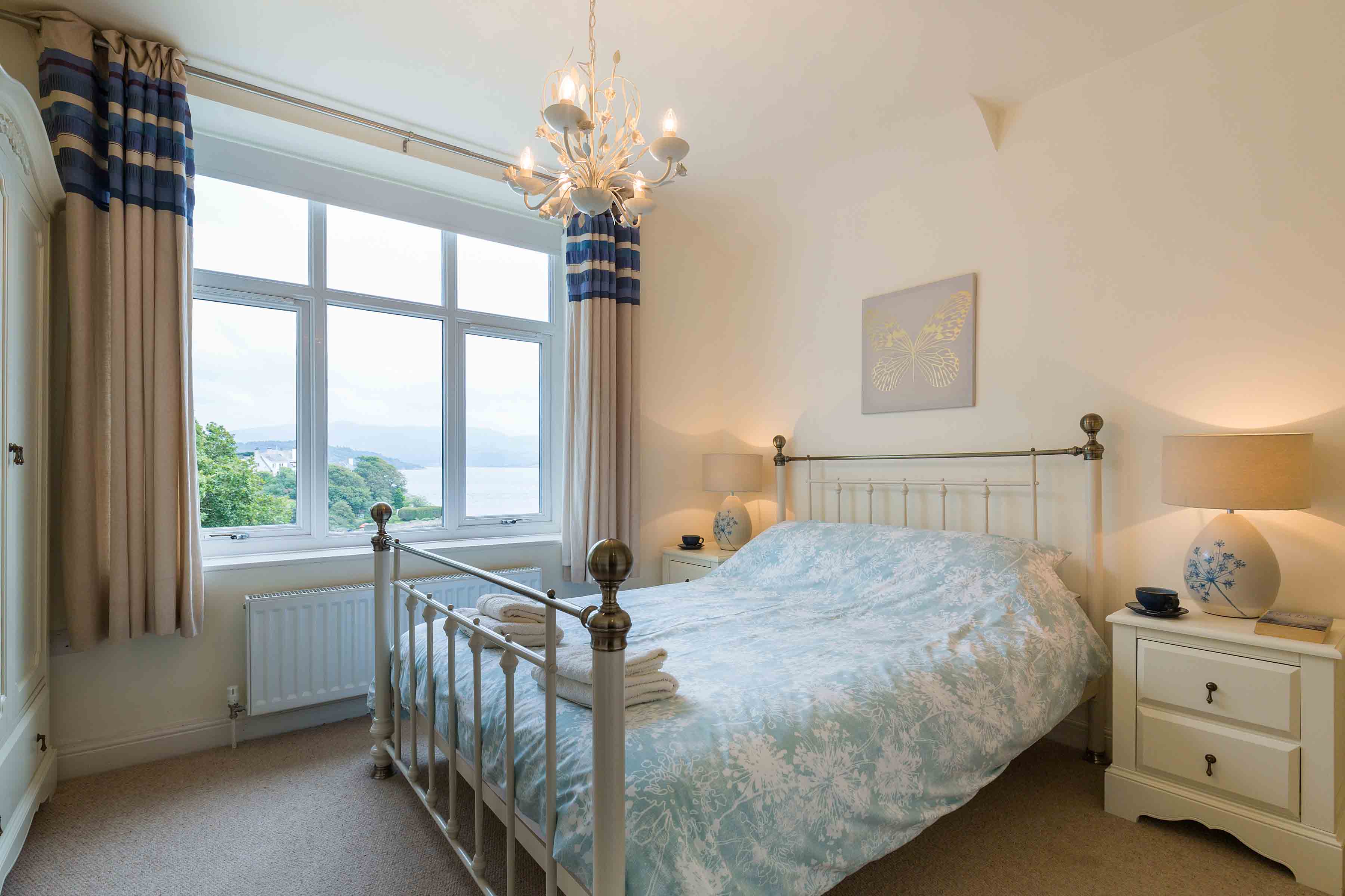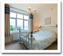 A kingsize bed, wardrobe, chest of drawers and two bedside tables are provided. The master bedroom enjoys access to the spacious en-suite bathroom which contains a 1200mm by 900mm shower cubicle, basin, WC and towel radiator. The master bedroom also enjoys spectacular sea and mountain views.